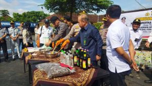 Suara Jember News, Jember - Sebanyak 5.000 botol minuman keras berbagai merk, 700 gram shabu, 1,5 kilogram ganja dan 50...